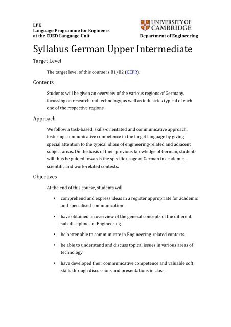 Curriculum B1 B2 German Language Class Coursework